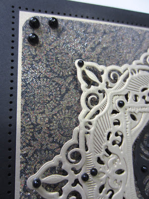 Morning Sue, what a beautiful and elegant card today - kind of Victorian look which is just stunning. At first glance I thought this was the Asian accents die but just shows off the versatility of the adorning squares that they can have a completely different look depending on how you use them!