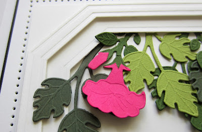 Hello there my crafty friends!  I cut a multi-layered frame out of white card using the Clipped Corner Rectangles.  I added mounting foam to the back of the frame, then cut a bunch of the greenery from the Toucan die set out of various shades of green card.  I added the leafy fronds to the mounting foam, hanging down from the edge of the frame into the card.  I added three of the flowers from the Hummingbird die set in yellow, pink and blue.  I cut the Toucan three times; once out of orange, yellow and black.  I used the yellow die cut as the base, the cut the away beak from the orange die cut and glued it onto the yellow one.  I cut just the body from the black die cut, removing the area around the face, then glued it onto the yellow base.  I used a marker to add the eye and the spot on the beak.  I seated the toucan on a leafy sprig coming out from the right side of the card.  I used the Flying By To Say Hello sentiment which I cut from black card.  I glued the two pieces inside the frame to the left of the toucan.  The card was completed with white and black mats and layers.  The finished dimensions are 7 1/2"  x  8 1/2" in size.  All for now, Sue x